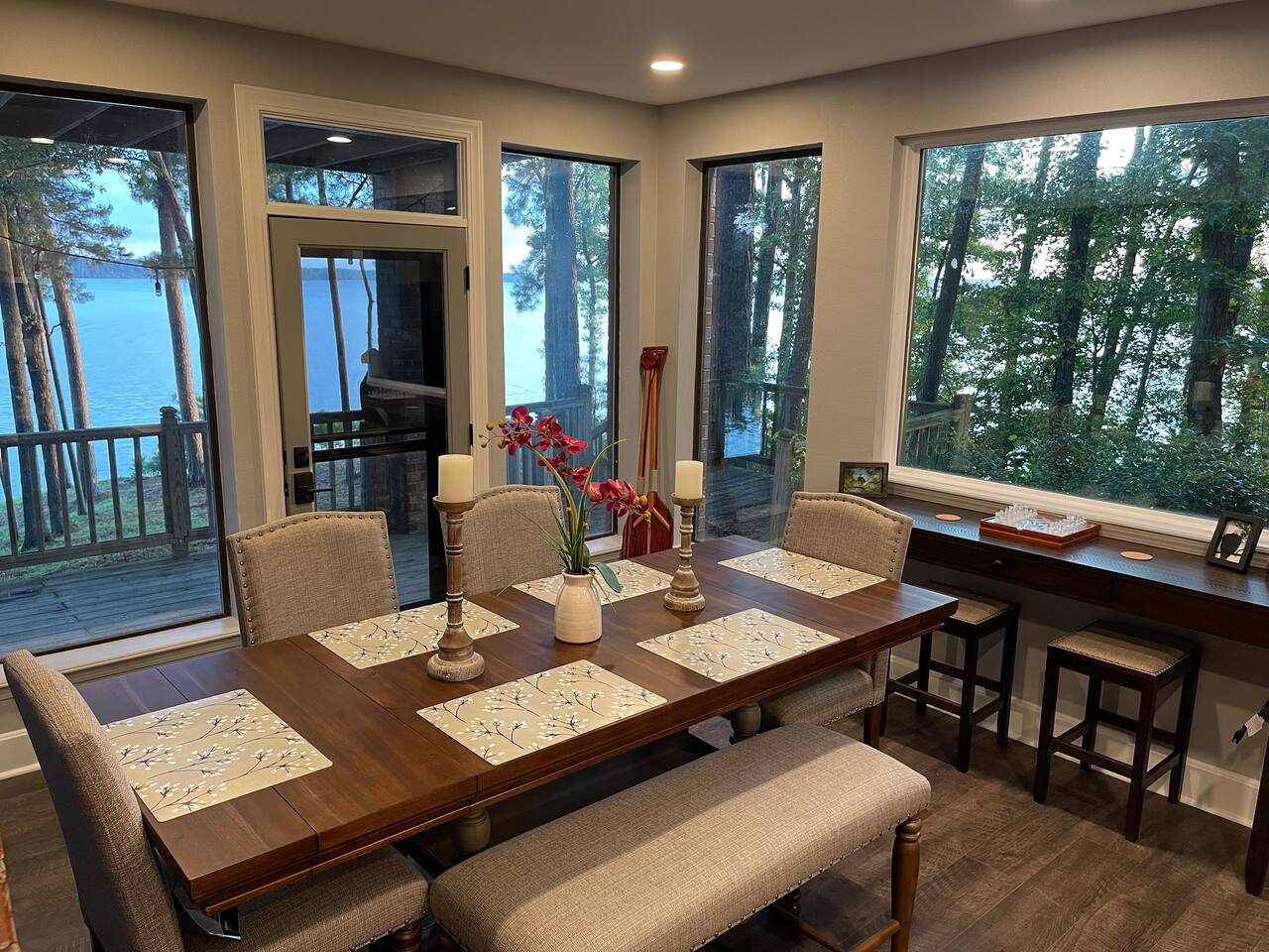 Eagles Point! Million Dollar Big Water 180 degree Views! Watch the Bald Eagles and Osprey land in the trees just off our large deck and patio and bring your camera! Three bedroom 2 1/2 bath 2600 sq ft waterfront home with amazing big water views from almost every window! Enjoy nature and wildlife at our secluded lakefront oasis on one of the prettiest points on Lake Sam Rayburn. The home has 25 windows over looking big water for miles! The entrance to the property has an automatic gate!